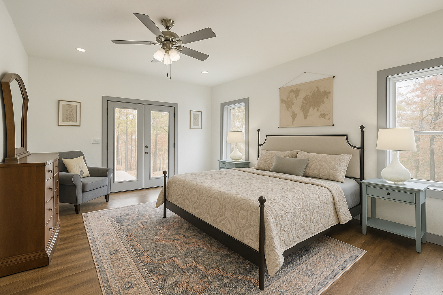 The structural difference is the frame — steel vs. wood. Everything inside (insulation, drywall, plumbing, electrical, cabinets, flooring) is built the same way. A well-finished barndominium is indistinguishable from a traditional custom home on the inside.
